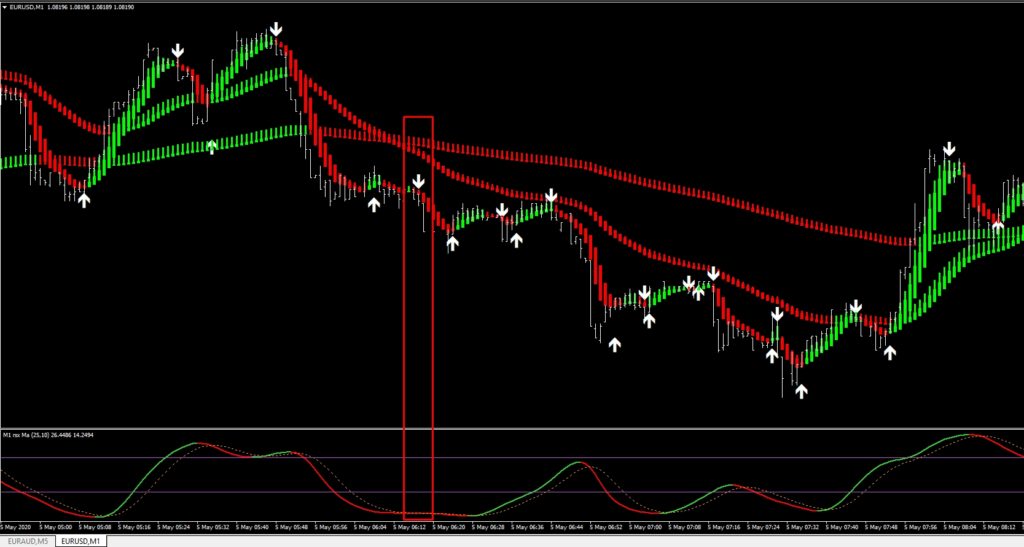 Snake Blood is built on three Heiken Ashi, Arrow with alert indicators and an Rsioma filtering oscillator.