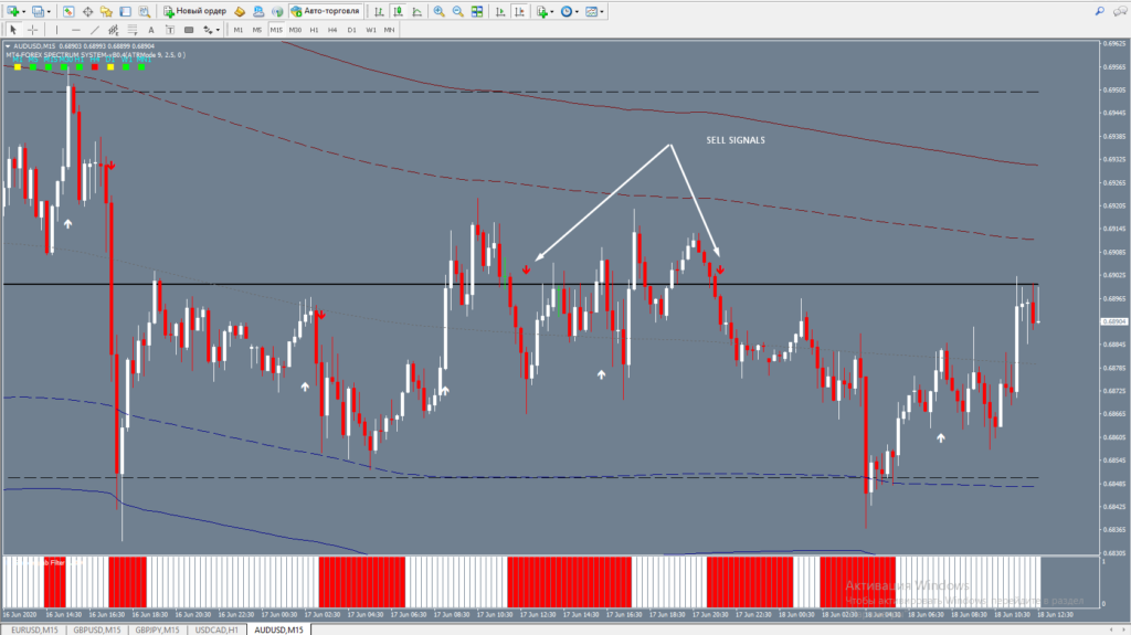 Signals indicating the opening of a sell position